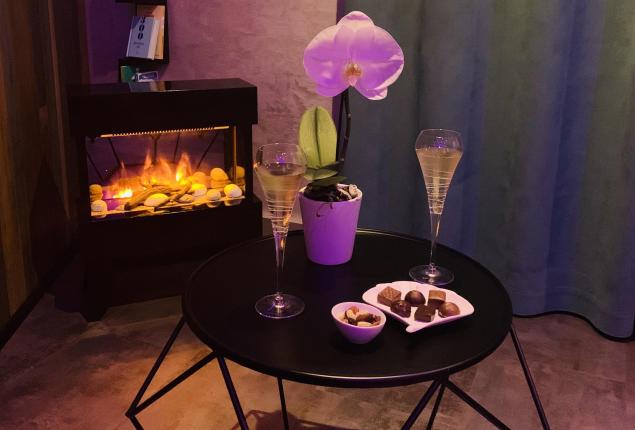 Prolongez votre moment de détente par une coupe de champagne et des mignardises dans notre salle de repos.